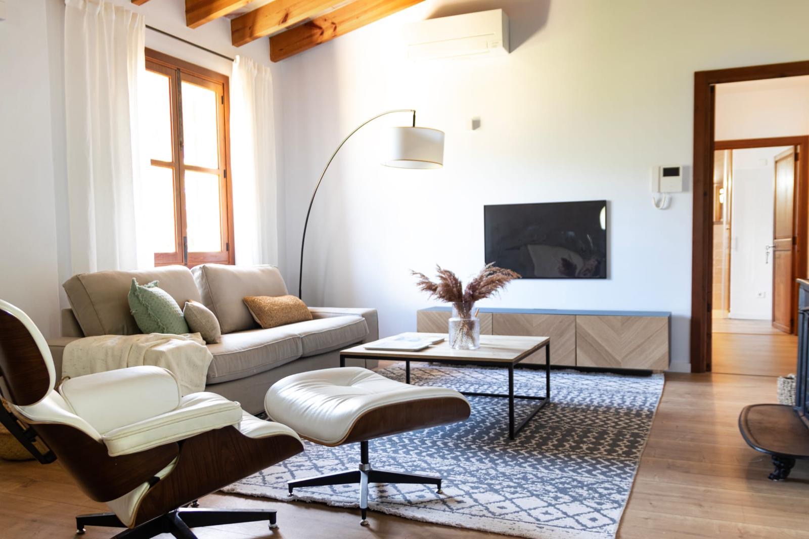 - Zonas comunes perfectas: En la primera planta hay una acogedora sala de lectura o TV, un aseo de invitados y un despacho con vistas a la piscina y una terraza con vistas a los impresionantes Barrancos del Torrent de’s.
