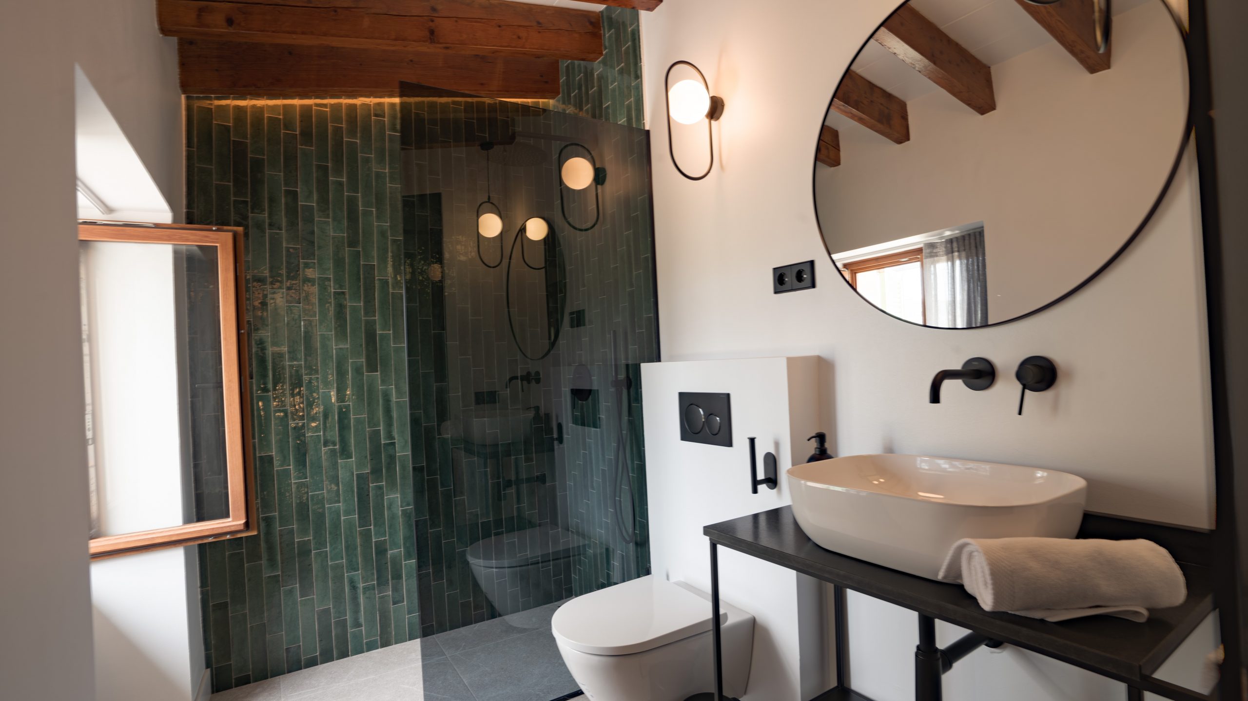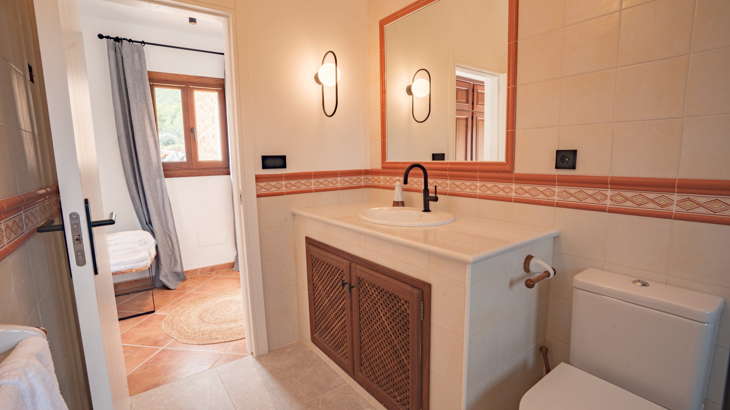 La villa dispone de varias habitaciones espaciosas, cada una equipada con cómodas camas de 180×190 cm (se pueden convertir en camas individuales si se desea). Cada habitación tiene su propio cuarto de baño privado, lo que garantiza la comodidad y la intimidad de todos los huéspedes. Además, cada habitación dispone de TV e incluye toallas. Los huéspedes pueden disfrutar de su propio espacio al aire libre, ya que todas las habitaciones tienen terraza privada o acceso directo a la terraza compartida de la planta baja, que ofrece un lugar perfecto para relajarse y disfrutar de la belleza del entorno.Mientras la finca mantiene sus actividades agrícolas y ganaderas tradicionales, los huéspedes pueden visitar los establos y disfrutar viendo a los animales. Es una oportunidad maravillosa para experimentar la auténtica vida rural de Mallorca y conectar con la naturaleza durante tu estancia.